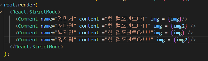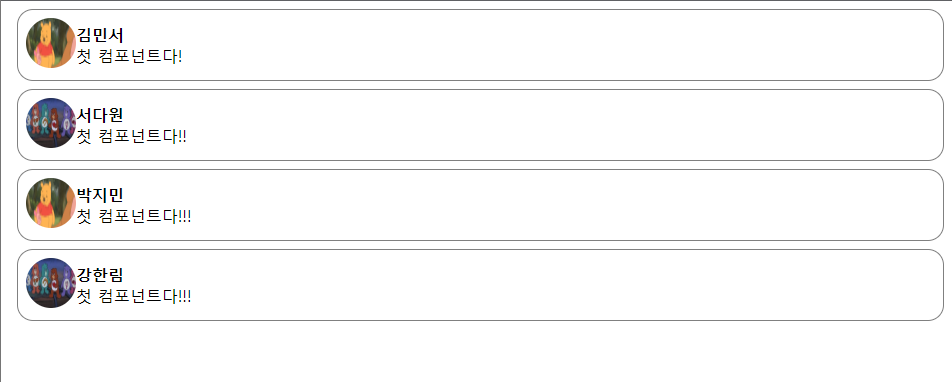 props로 프로필사진, 이름, 내용의 값을 받고 이 컴포넌트로 댓글 4개를 구현해주었다.